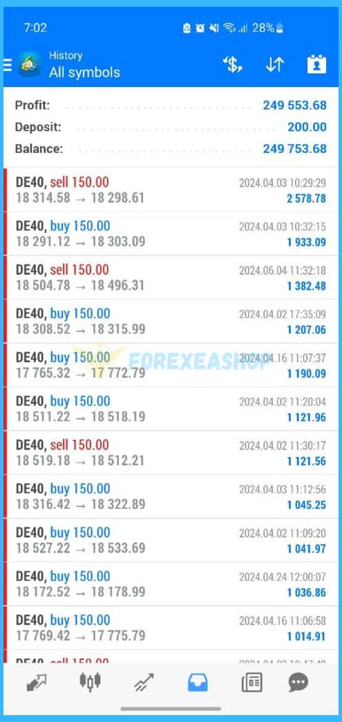 - Curency pairs: Any pairs (but best trading DE40, XAUUSD (Gold)).