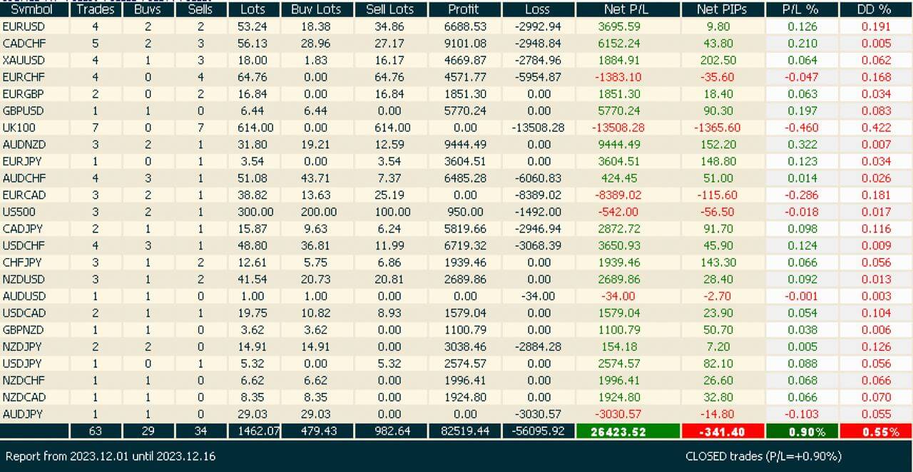 - Very Low Drawdown with Less than 0.1% Risk Per Trade.