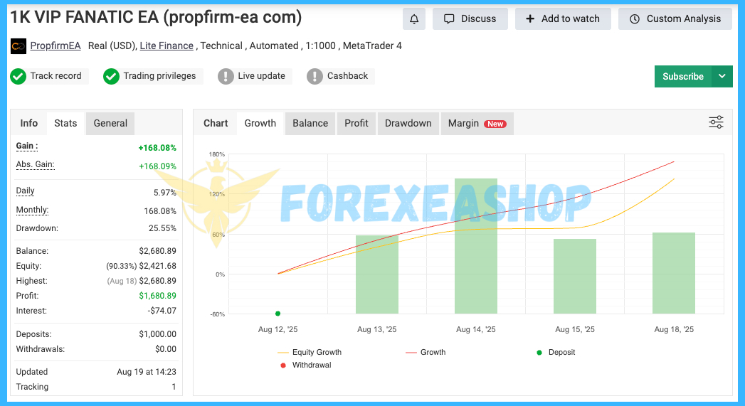 - Fanatic EA is aggressive and might not fit strict drawdown rules of some prop firms.