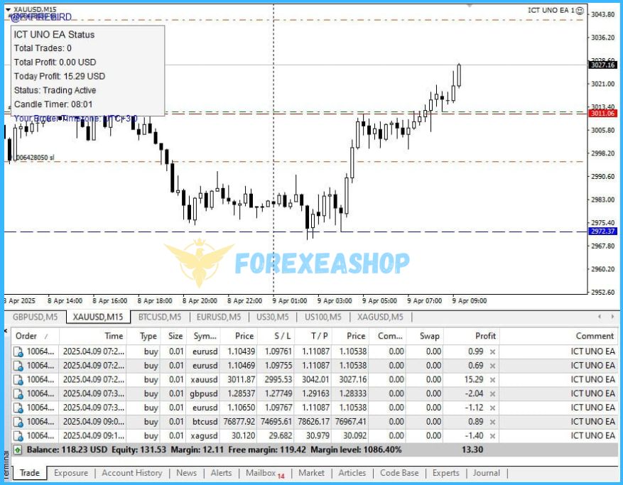 Link download ICT UNO EA MT4 v1.0 Without DLL Setfiles will be sent to your email after purchase.