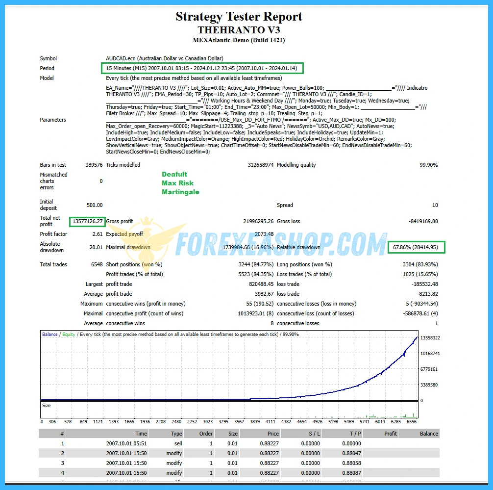 Theranto v3 offers a disciplined and methodical approach to pullback scalping on AUD and CAD related pairs. Its trend following logic combined with technical and sentiment filters helps reduce low quality entries. The EA is fully automated, runs throughout the trading week, and is designed to operate with predefined risk controls. Traders seeking a structured M15 pullback system can integrate this EA as a practical automated solution.