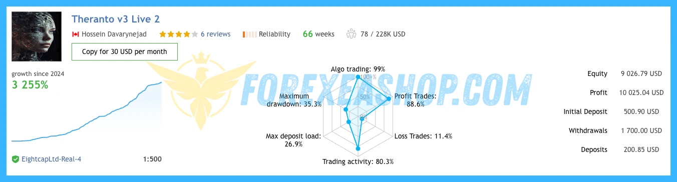 Experts Advisor on EightcapLtd – Real – 4 account 1:500 profit 3255%