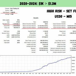 Backtests shown (e.g., in screenshots) are highly optimized, and results cannot be directly applied to live trading.